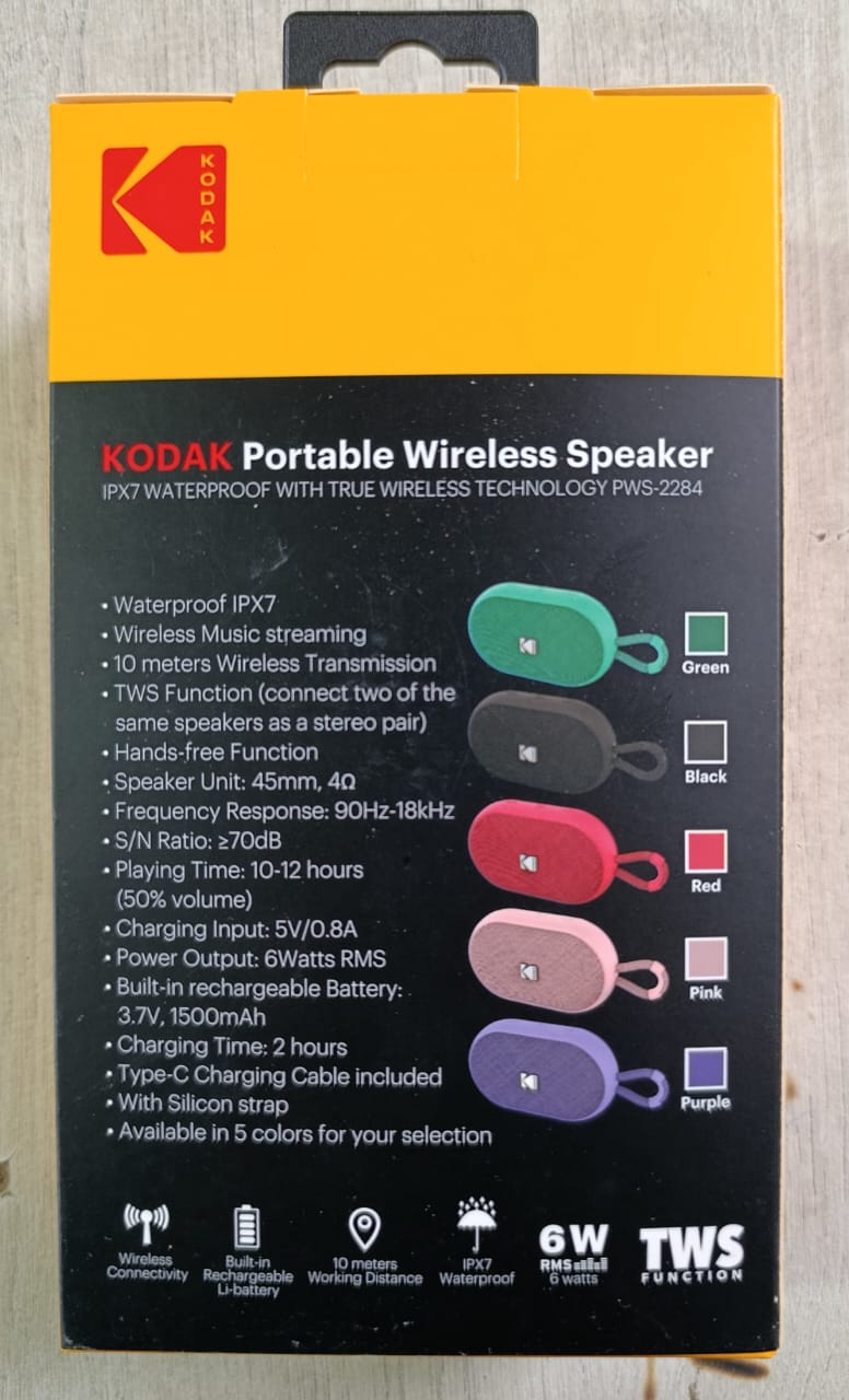 Nom : HAUT PARLEUR KODAK SANS FIL IPX7 6W - Rouge (PWS2284)