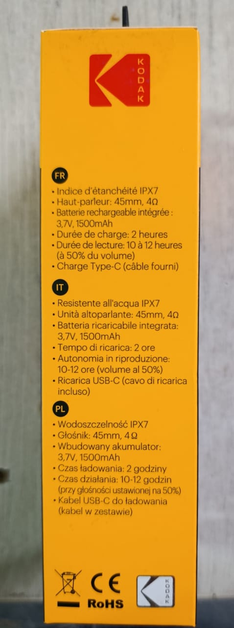 Nom : HAUT PARLEUR KODAK SANS FIL IPX7 6W - NOIR (PWS2284)