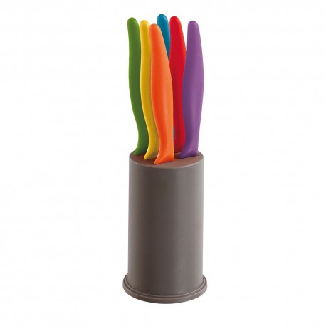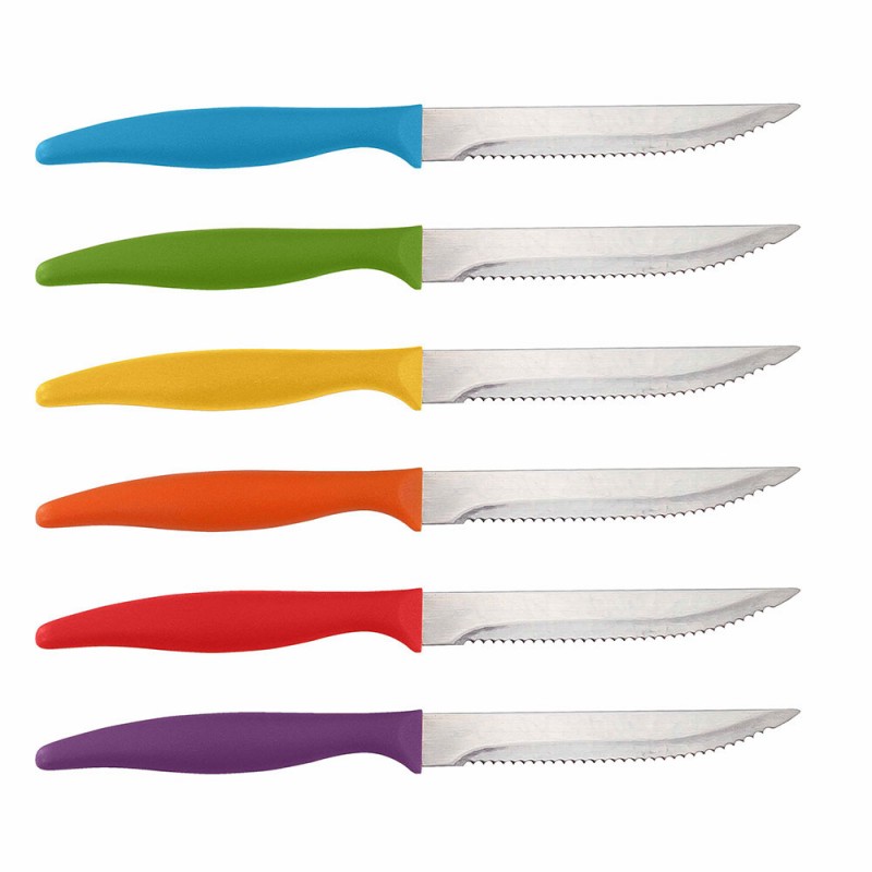 Un pack de 6 couteaux à steak de la marque Française Kitchen Artist de Livoo. Multi-couleur avec support original en plastique.