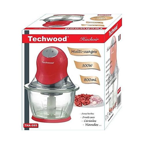 Nom : Mini hachoir - Chopper - Rouge - Bol en verre - 300 W - Garantie 1 An