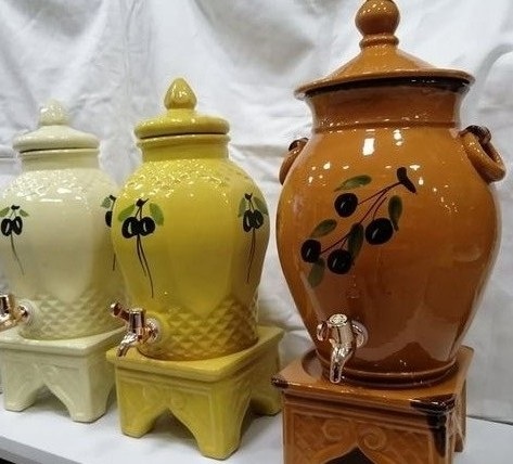 Pot de conservation l'huile en poterie pour que votre huile conserve ses valeurs nutritives toute l'année, dotée d'un robinet anti-goutte d'origine et un bouchon de vidange pour un lavage facile..L'huile d'olive doit être conserver dans un endroit sombre loin de la lumière et dans des récipients en matière non réactif et surtout pas dans des bidon en plastique car l'acidité de l'huile entre en réaction avec le plastique et devient très dangereux pour la santé.