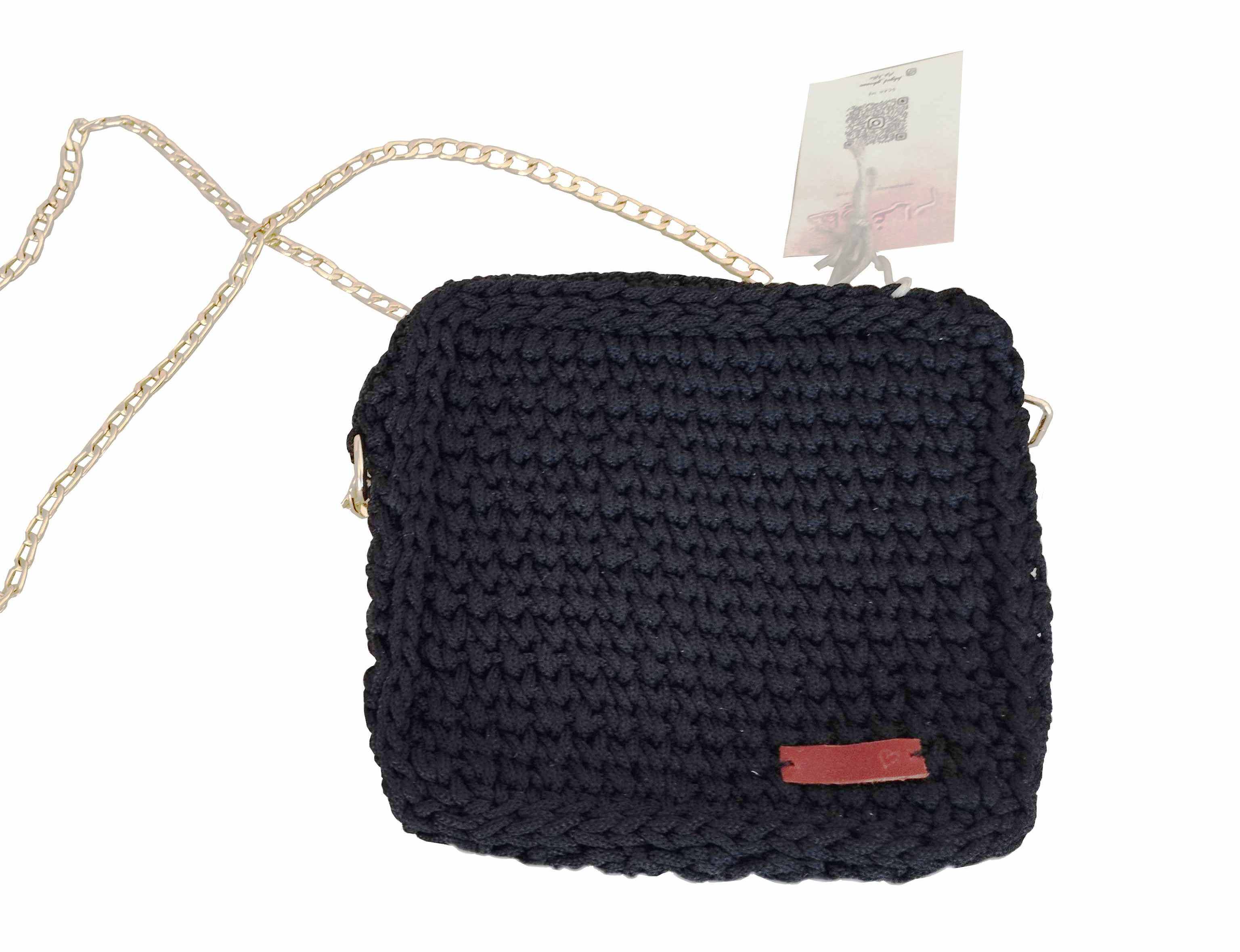 Nom : Sac carré fait main au Crochet Pour Femme , Noir